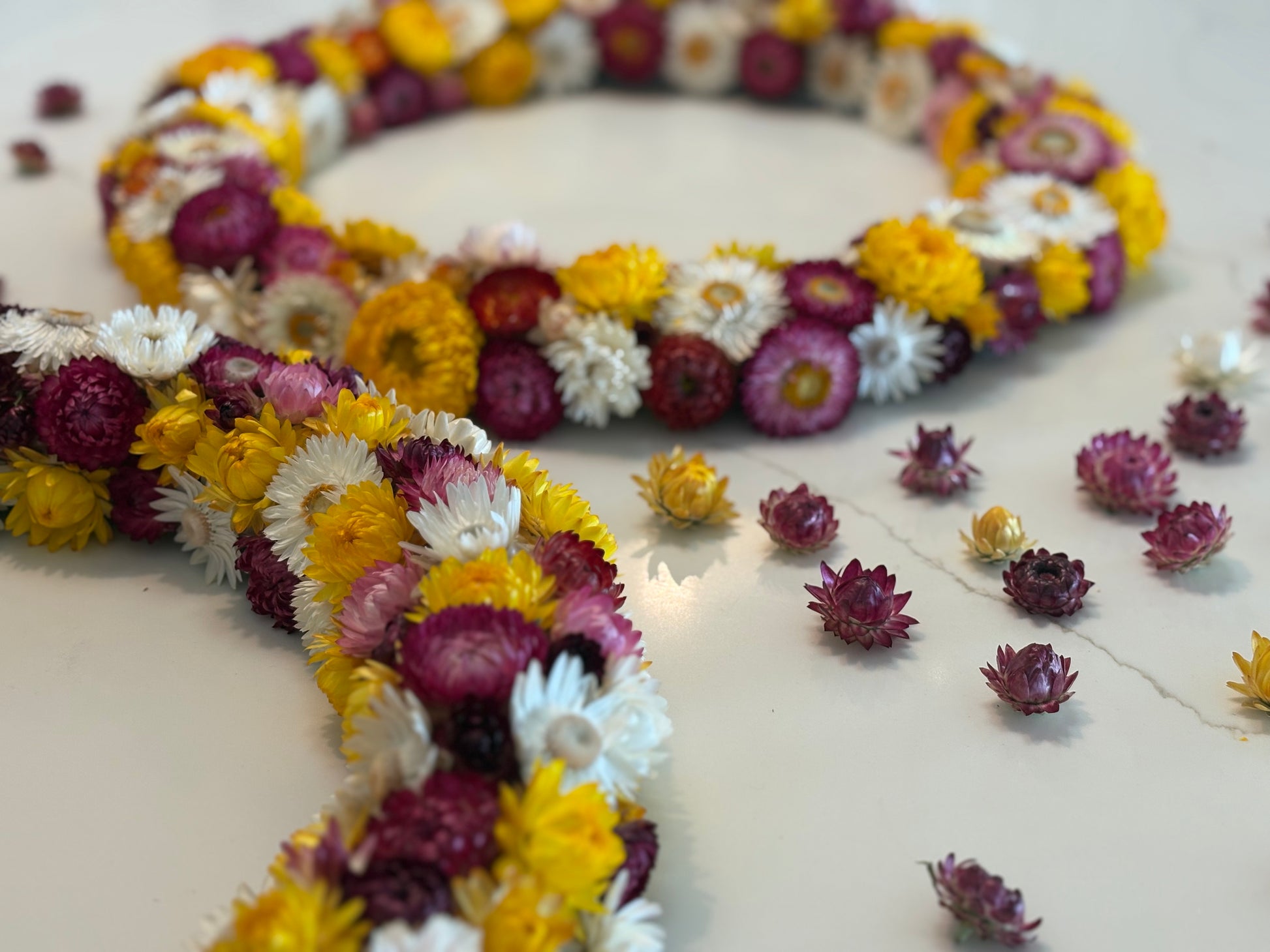 Bring a touch of sustainable beauty into your home with our handcrafted wreaths, made exclusively from Full Circle Farm regeneratively grown flowers. Each wreath is a burst of vibrant, natural color - whether you’re looking to celebrate the heart of summer or the cozy hues of fall, these wreaths add a unique, eco-friendly charm to any space. The dried flower wreaths (all except the sorghum and wheat wreath) will fade if exposed to direct sun.